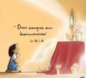 Jesús nos pide que oremos sin desanimo, que no dudemos nunca y aunque nos parezca que no está llegando a Dios, sigamos insistiendo.