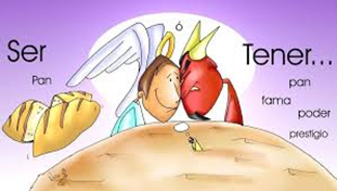 La tentación de poder y poseer, es la que quiere arrastrarnos a dominar a los demás, a poseer bienes o poder que nos haga superiores e insensibles ante la explotación y la opresión que sufren quienes necesitan por haber sido menos favorecidos por los bienes que Dios ha puesto para un reparto justo y fraternal. Jesús contesta a esta tentación: “Al Señor, tu Dios, adorarás y a él solo darás culto”